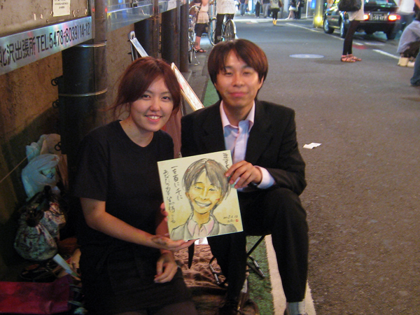 私は、似顔絵描きと
