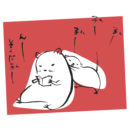 ◆ 「にんげんくさい どうぶつたち」シリーズでは、どうぶつたちのシュールな世界を一枚絵に描く。カバのキャラクター『かばいばあちゃん』が一番人気。流石ばあちゃん、不動の人気。