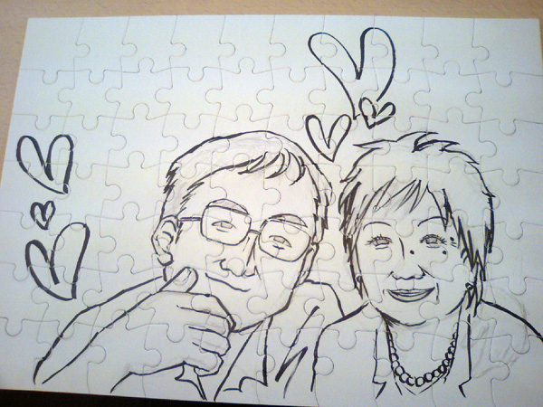 だんなさんは似顔絵ではなく、イメージで描きました。
