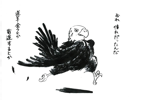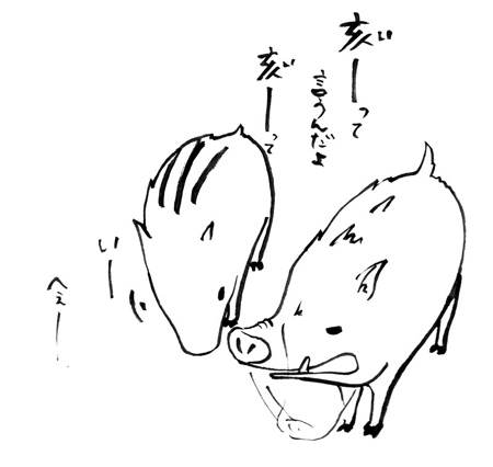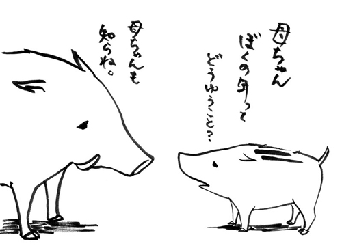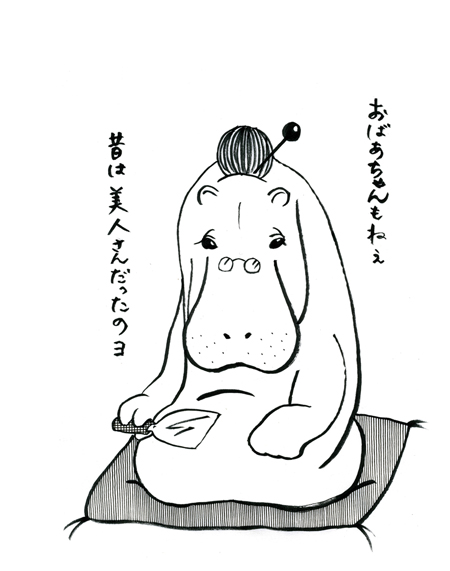 ◆ 「にんげんくさい どうぶつたち」シリーズでは、どうぶつたちのシュールな世界を一枚絵に描く。カバのキャラクター『かばいばあちゃん』が一番人気。流石ばあちゃん、不動の人気。