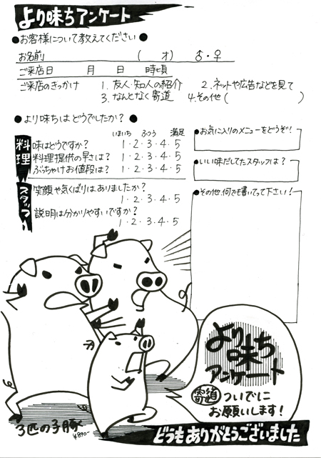 ◎お好み焼きもんじゃ焼き「より味ち」様にて、店舗キャラクターデザインなどを作成